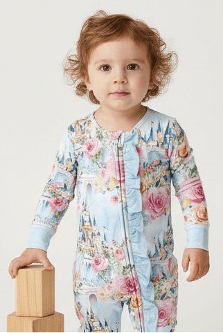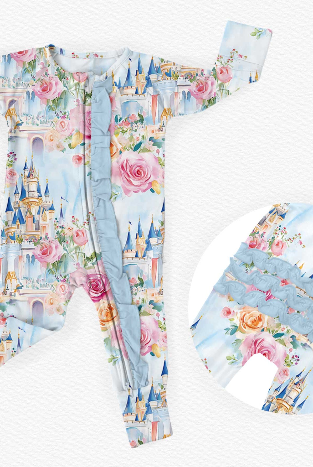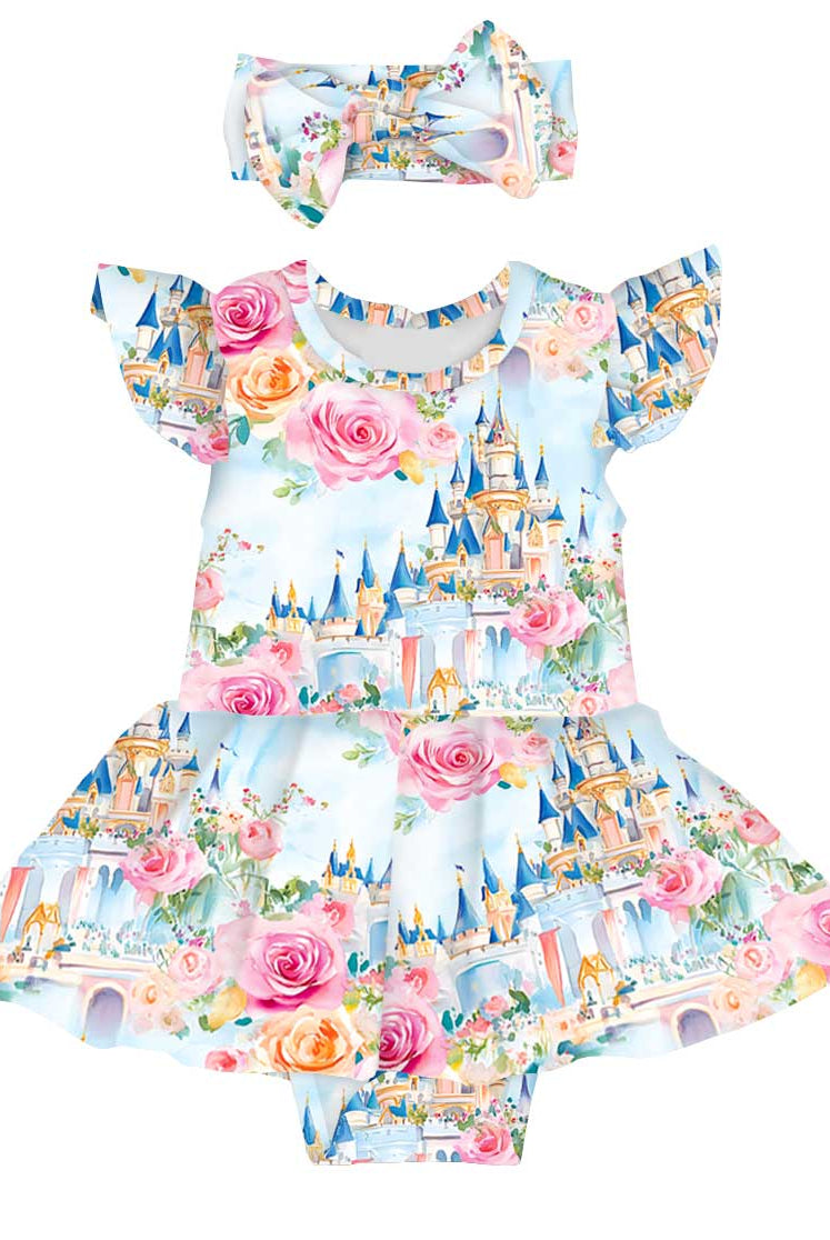 Handcrafted by us in New England with love, this dress is bursting with tulle, sequins, and sparkles in multiple layers! Plus, it's adorned with a charming princess castle!