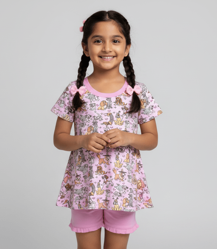[Pre Order] Magic Makers Darling Dogs - Bamboo Short Sleeve & Shorts Peplum Set (EST SHIP EARLY AUGUST)