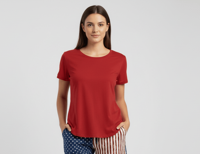[Pre Order] Summer Vibes American Patriot Deep Red - Women's Solid Bamboo Scoop Neck Short Sleeve Top (EST SHIP EARLY JUNE)