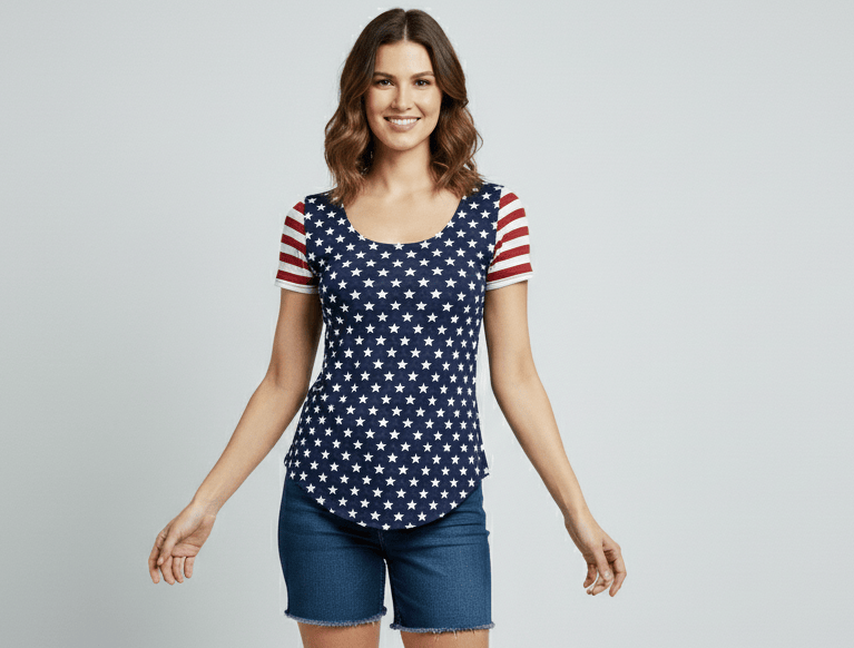 [Pre Order] Summer Vibes American Patriot - Women's Solid Bamboo Scoop Neck Short Sleeve Top (EST SHIP EARLY JUNE)