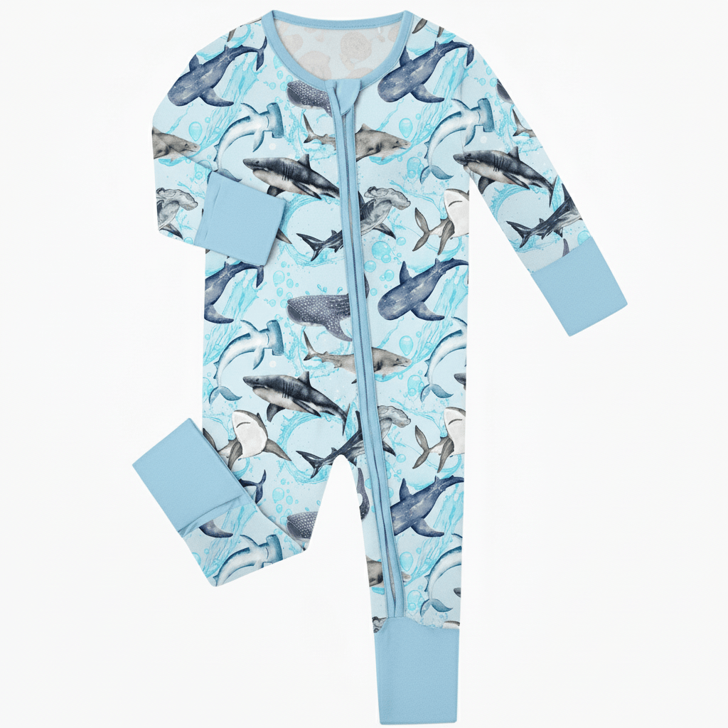 [Pre Order] Summer Vibes Deep Blue Sea - Bamboo Zippy Romper with 3 way zipper (EST SHIP EARLY JUNE)