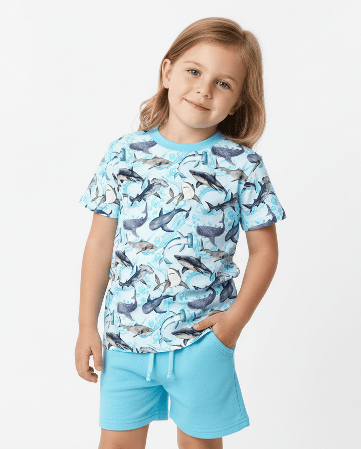 [Pre Order] Summer Vibes Deep Blue Sea - Kid's Bamboo Daywear Short Set (EST SHIP EARLY JUNE)