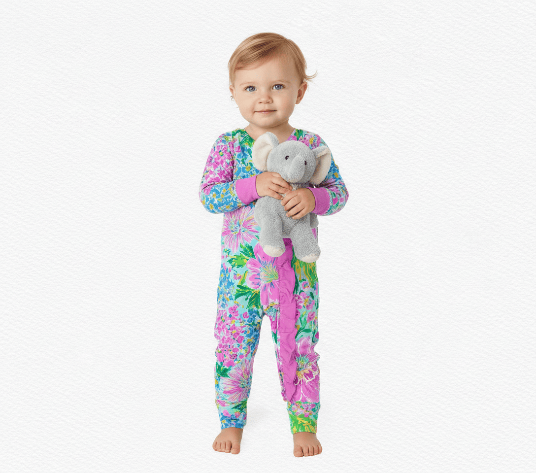 Sweet details meet everyday comfort in our Ruffle Bamboo Zipper Romper. Featuring the cutest ruffle accents along the zipper and on the bum, these pajamas are as adorable as they are functional.