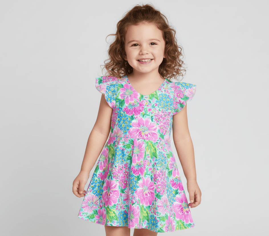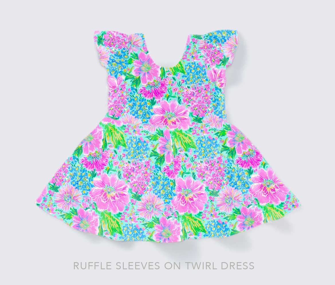 [Pre Order] Summer Vibes Harbor Hydrangea - Girls Flutter Sleeve Bamboo Twirl Dress (EST SHIP EARLY JUNE)