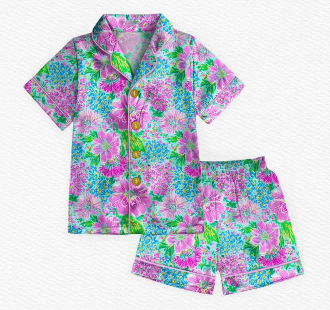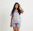 [Pre Order] Summer Vibes Harbor Hydrangea - Women's Bamboo Short Sleeve and Shorts Lounge Set (EST SHIP EARLY JUNE)