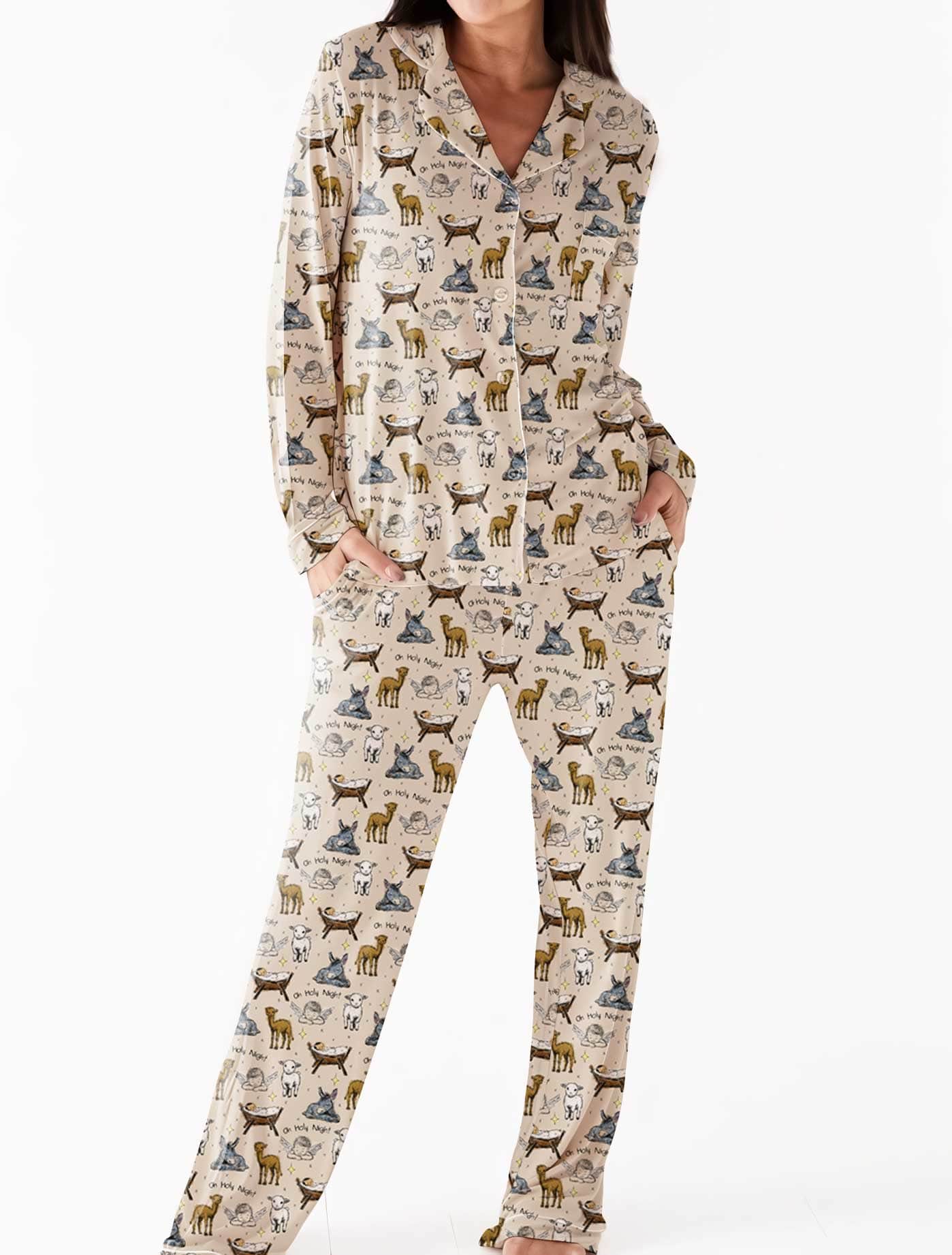 Happy Holidays Oh Holy Night - Women's Bamboo Long Sleeve Lounge Set