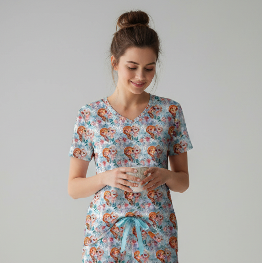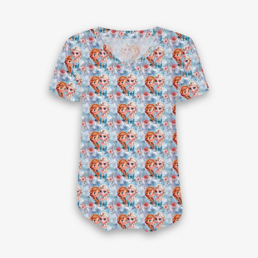 Royals & Rebels Frosted Blossoms - Women's Bamboo V Neck Short Sleeve Top (EST SHIP MID DEC)