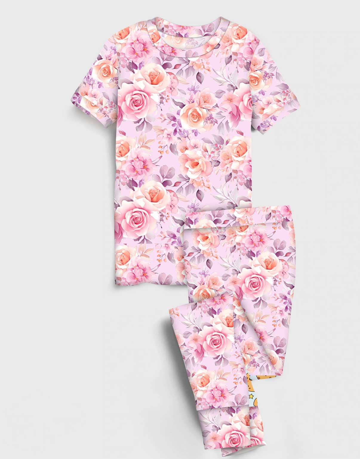Kids stay super comfortable in this short sleeve pant lounge set. Light weight and breathable makes for a good nights sleep!