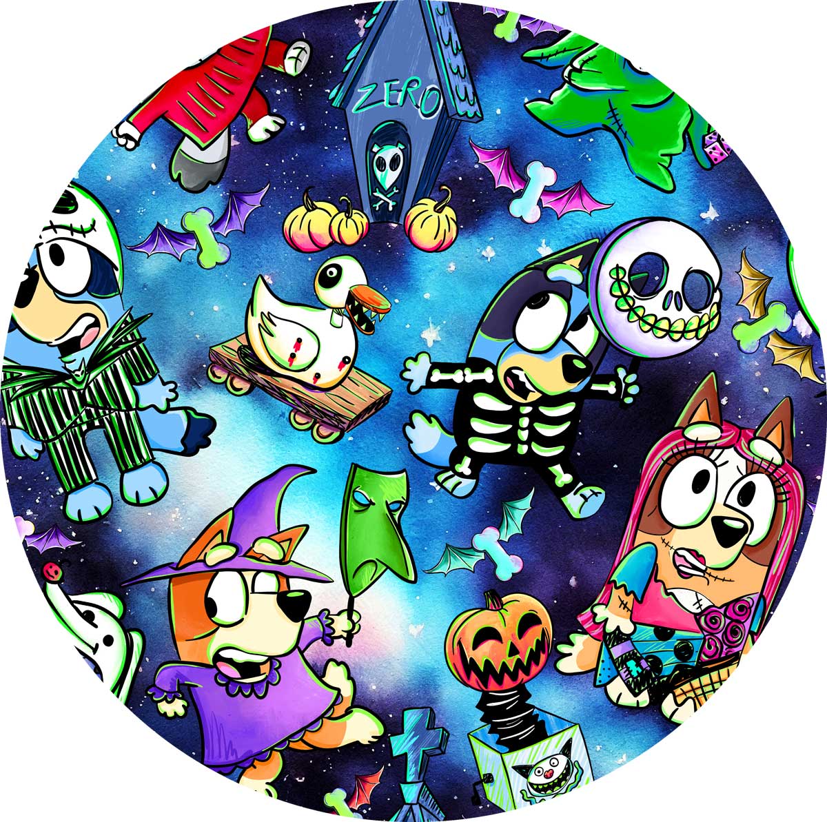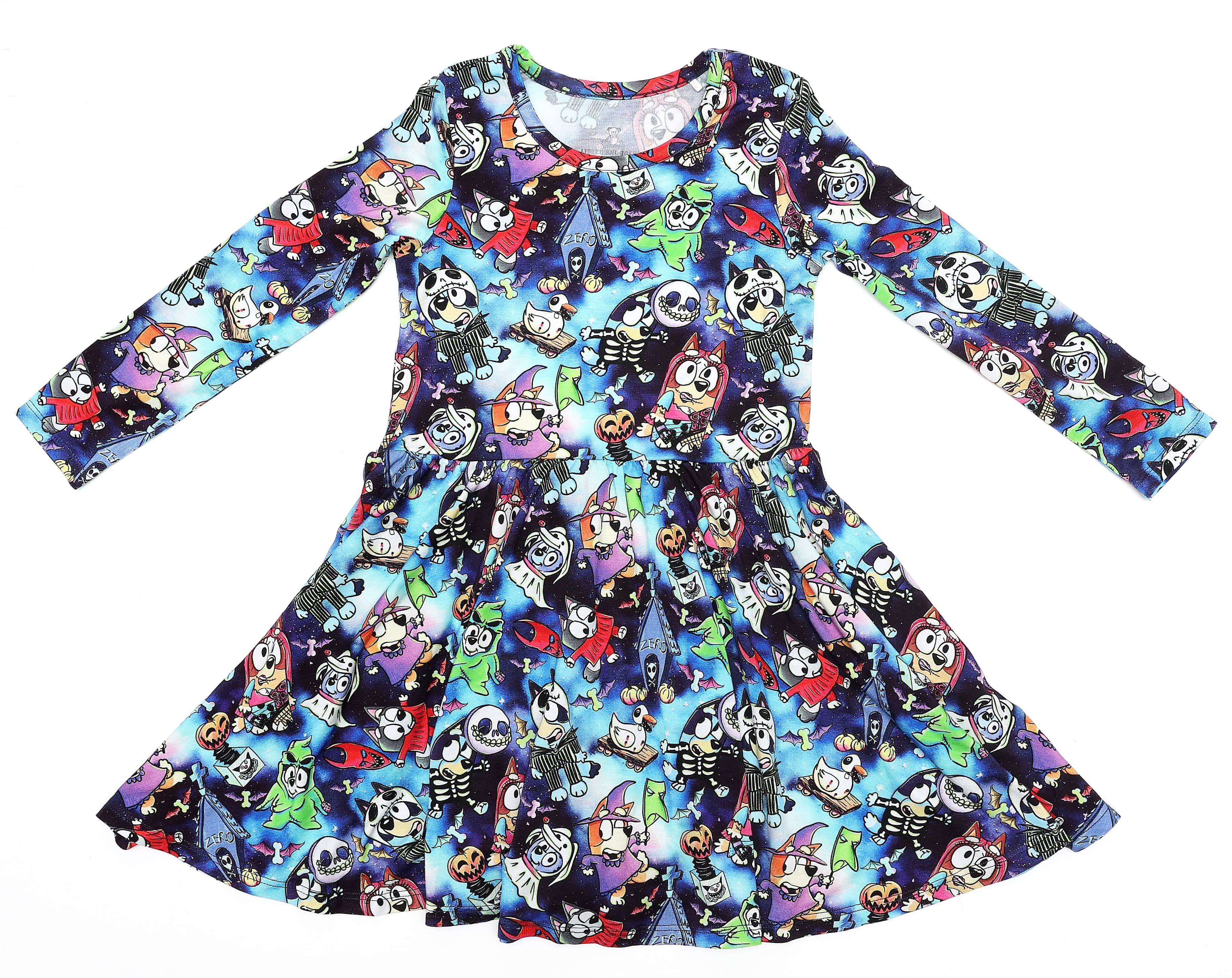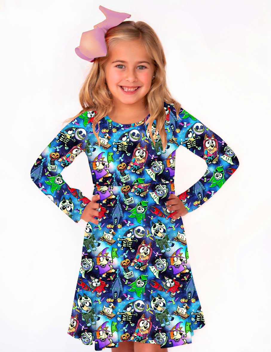 Boo Bash Creepin' it Blue - Girls Long Sleeve Bamboo Twirl Dress