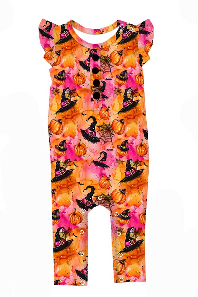 Very Scary Witch Please! - Girls Bamboo Flutter Sleeve Ruffled Romper