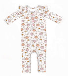 Not So Scary Boho Ghosts - Girls Bamboo Long Sleeve Ruffled Romper