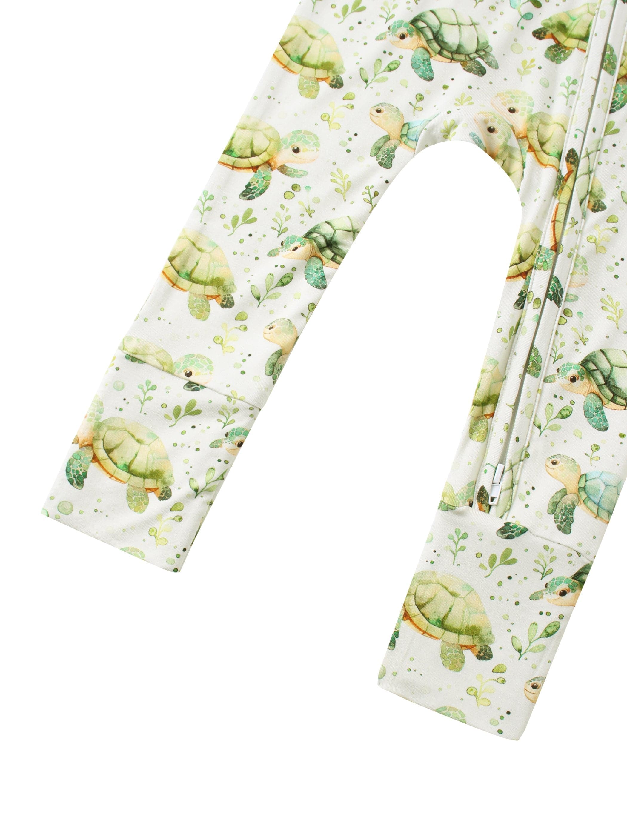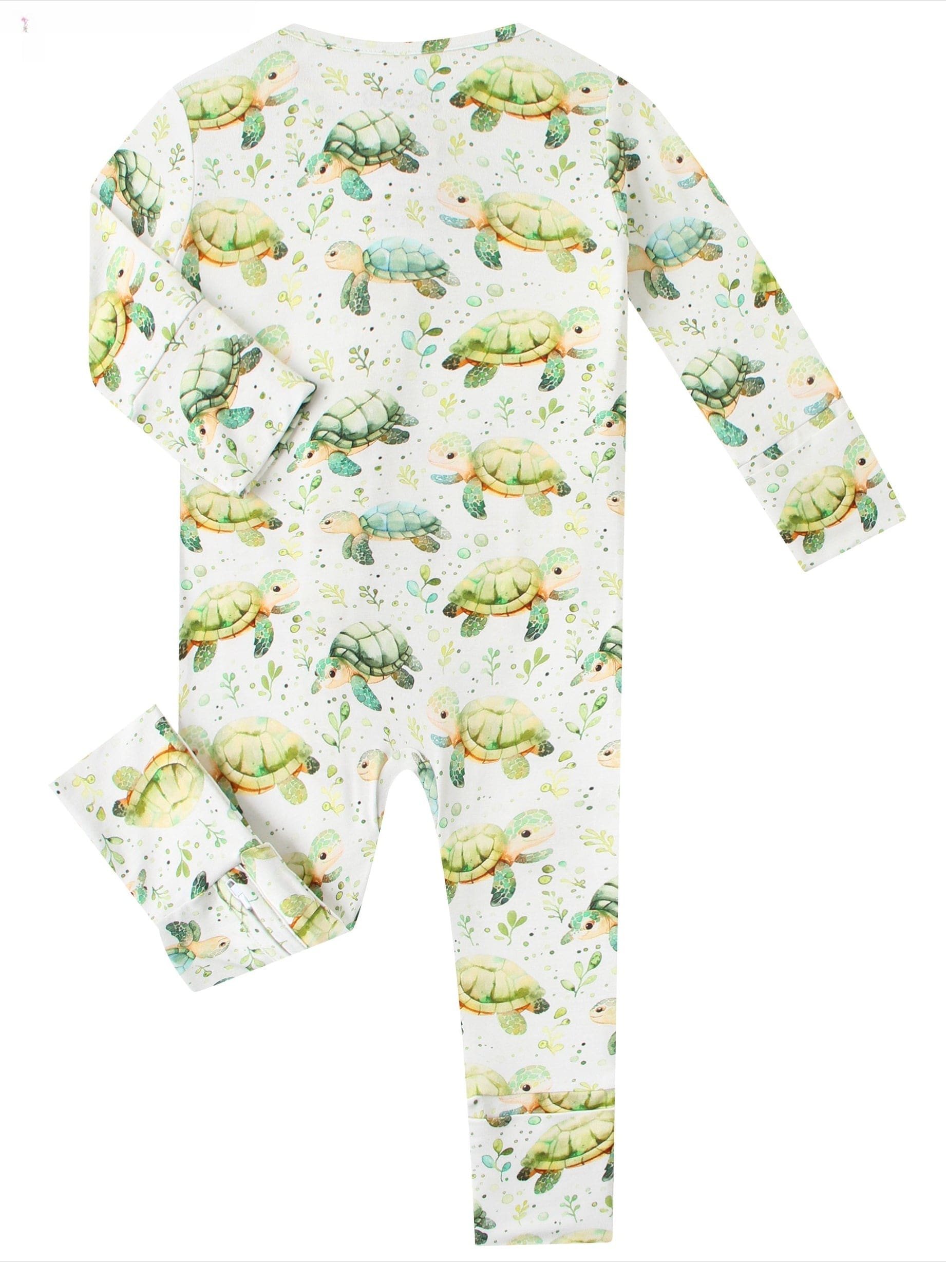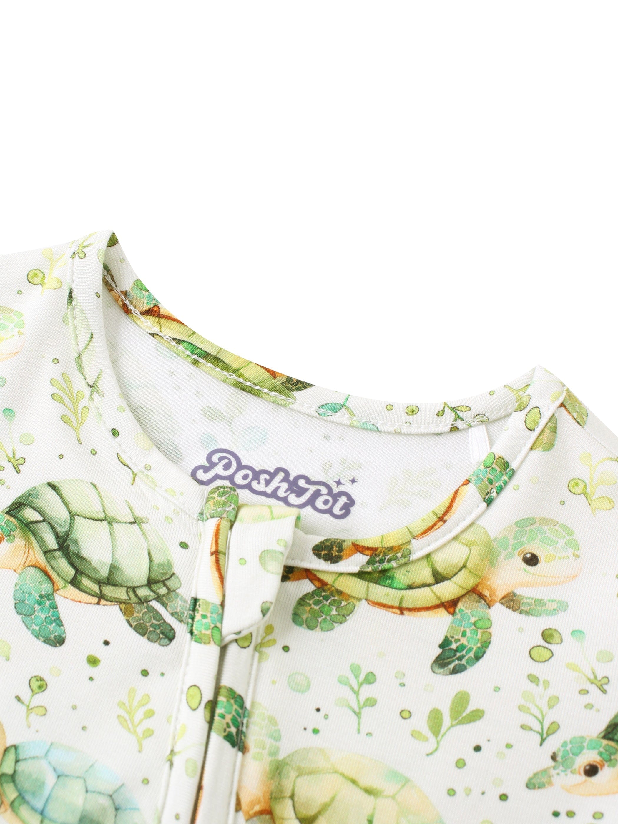 PoshTOT Green Sea Turtle Bamboo Baby Convertible Zippy Romper