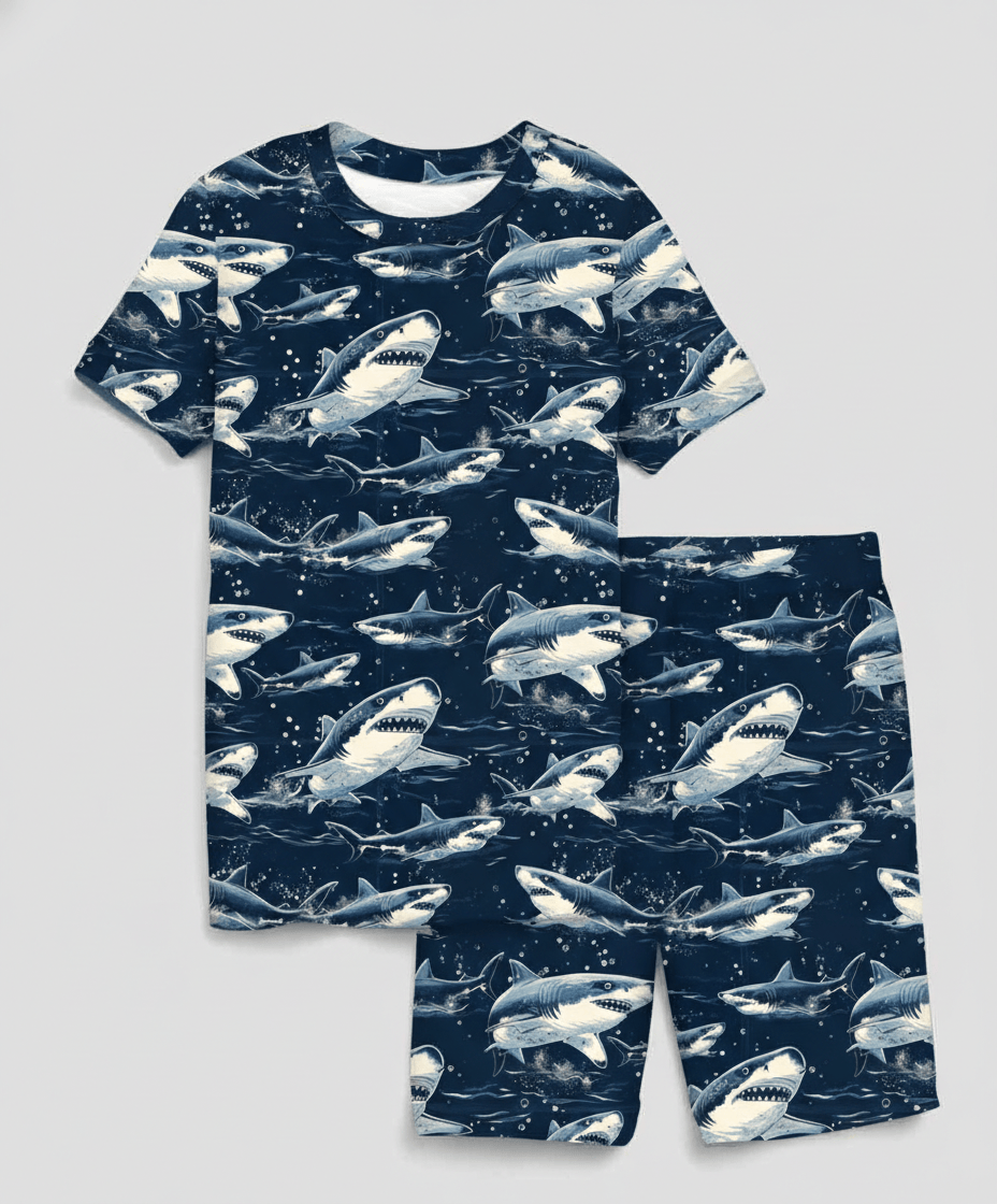[Pre Order] Charlie Play Shark Frenzy - Bamboo Lyocell Short Sleeve Short Lounge Set (EST SHIP EARLY MARCH)