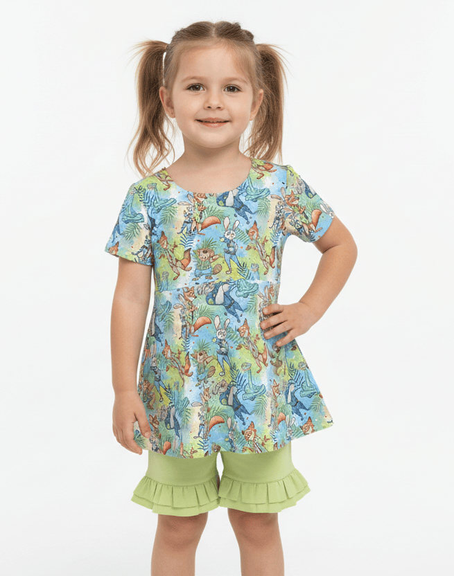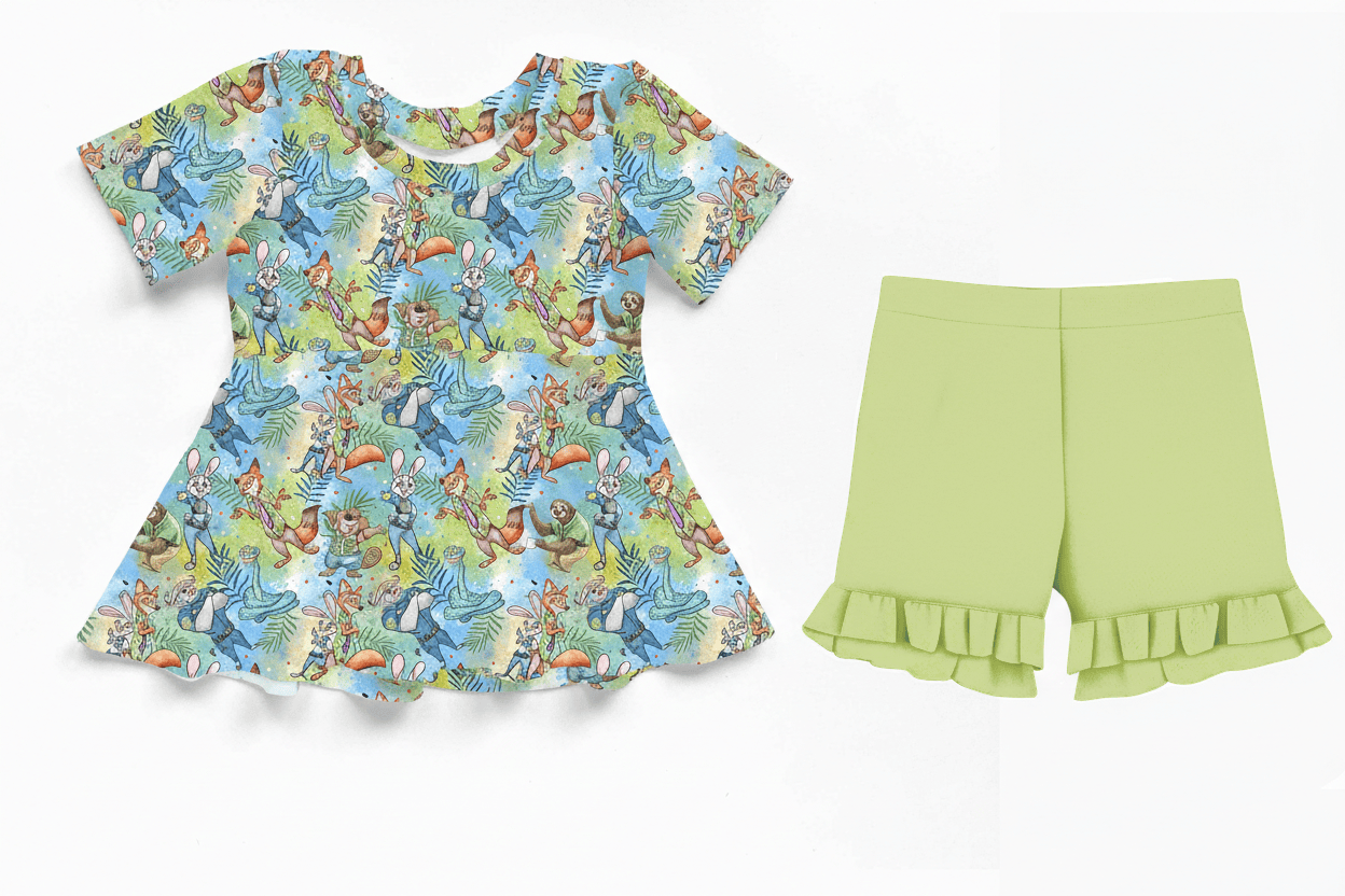 50% Off Storybook Squad Roarin Safari - Bamboo Short Sleeve & Shorts Peplum Set