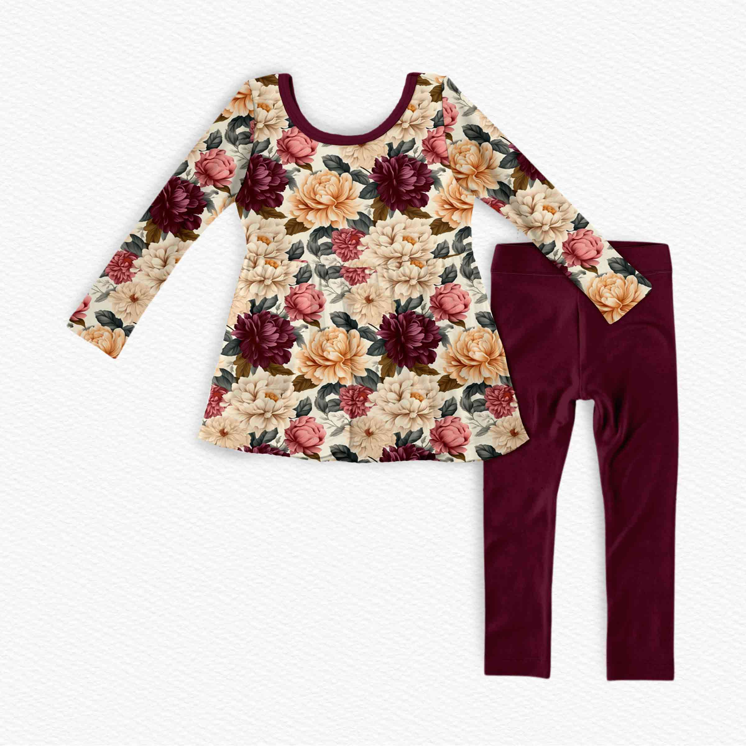 Fallin for Fall Autumn Floral - Bamboo Long Sleeve & Pants Peplum Set