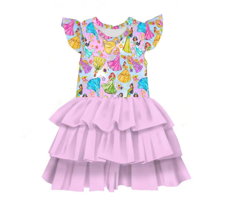Dazzling Duos Princess Glam - Girls Flutter Sleeve Bamboo Tiered Tulle Dress