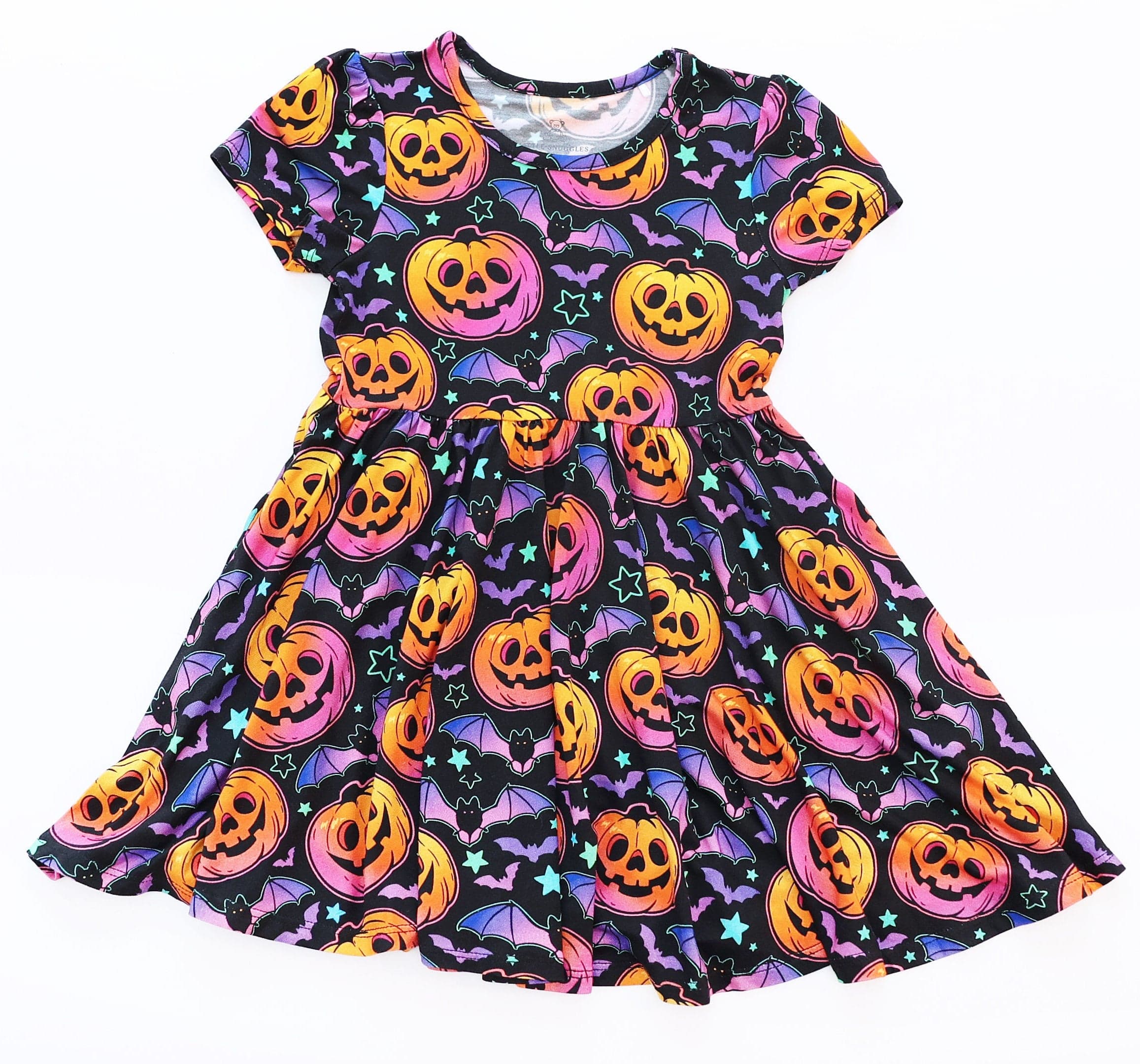 Not So Scary Goin Batty - Girls Short Sleeve Bamboo Twirl Dress