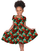 [Pre Sale] Feelin Festive Golden Poinsettia - Girls Short Sleeve Bamboo Twirl Dress (EST SHIP LATE NOV)