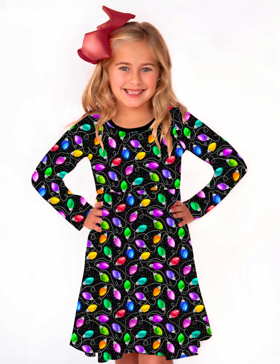 [Pre Sale] Feelin Festive Starry Lights - Girls Long Sleeve Bamboo Twirl Dress (EST SHIP LATE NOV)