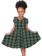 [Pre Sale] Happy Holidays Merry Tartan - Girls Short Sleeve Bamboo Twirl Dress (EST SHIP MID NOV)
