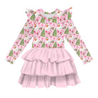 [Pre Sale] Happy Holidays Pink Noel - Girls Long Sleeve Bamboo Tiered Tulle Dress (EST SHIP MID NOV)