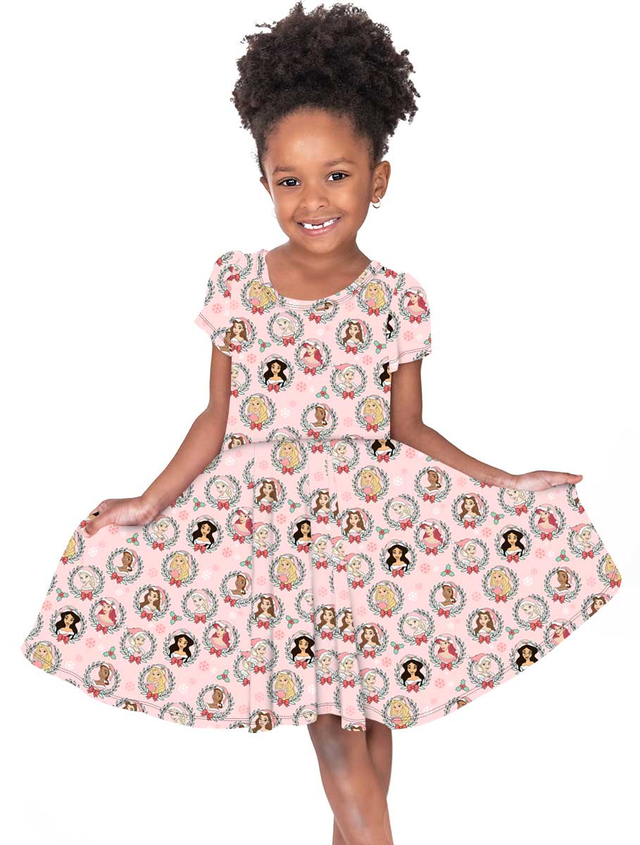 Magical Holidays Princess Wreaths - Girls Short Sleeve Bamboo Twirl Dress