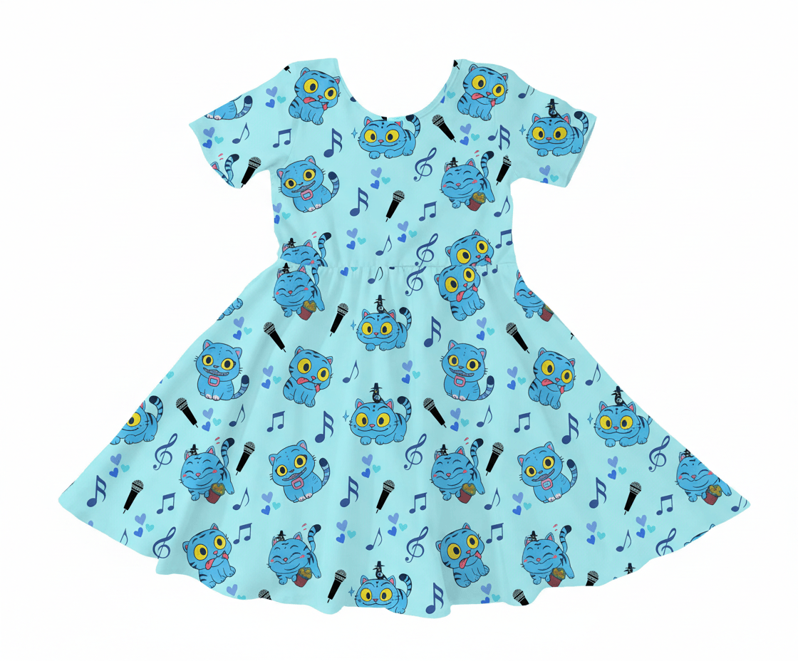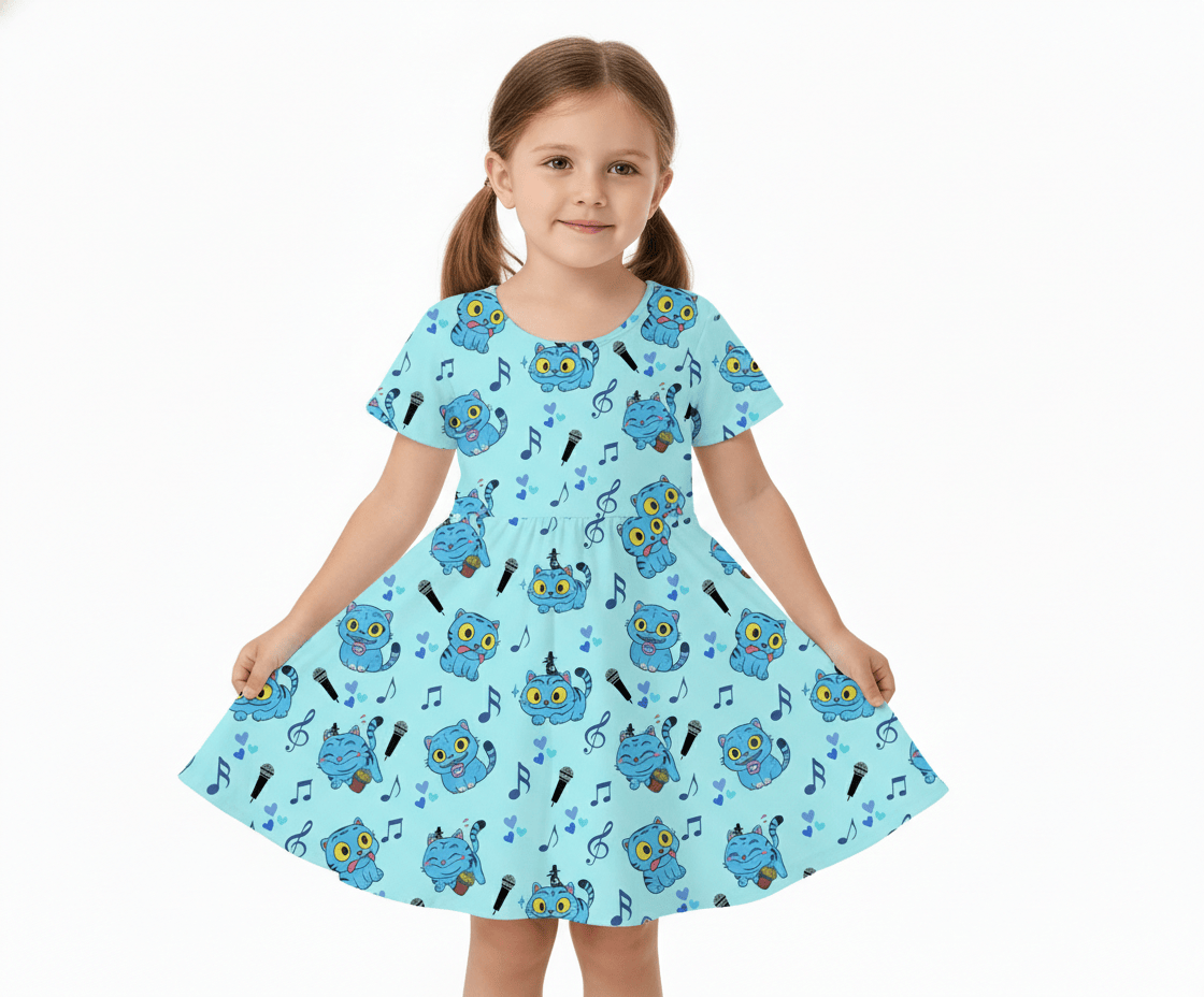 [Pre Sale] Pop Edit Meow Music - Girls Short Sleeve Bamboo Twirl Dress (EST SHIP MID APRIL)
