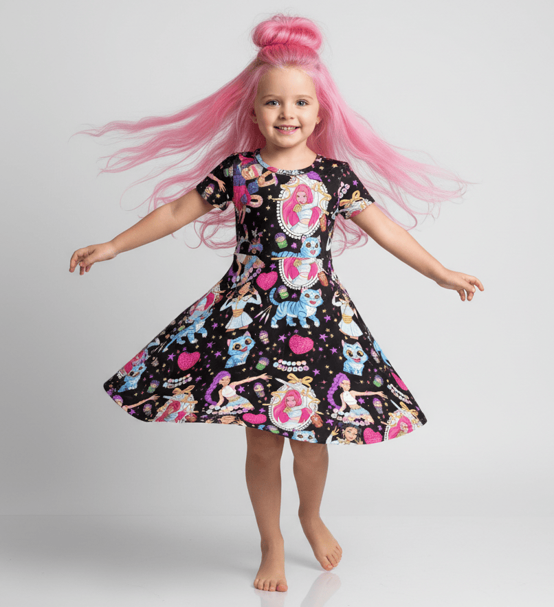 [Pre Sale] Pop Edit Power Pop - Girls Short Sleeve Bamboo Twirl Dress (EST SHIP MID APRIL)