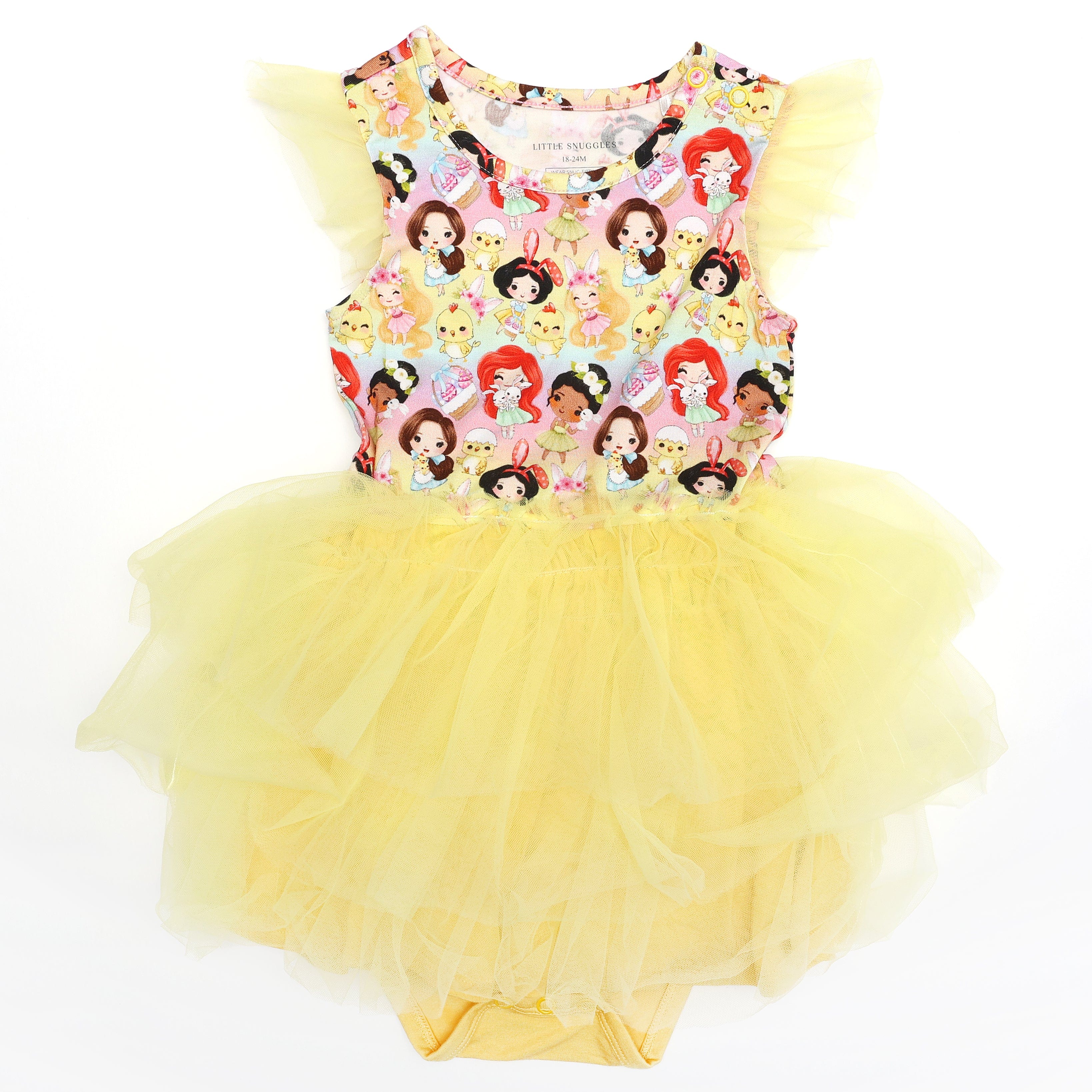 Play the day away in style! Made with bamboo fabric, this dress is soft and comfortable for all-day wear. With its tiered tulle design, your little girl will feel like a princess as she twirls and plays. Get ready to make her dreams come true!"