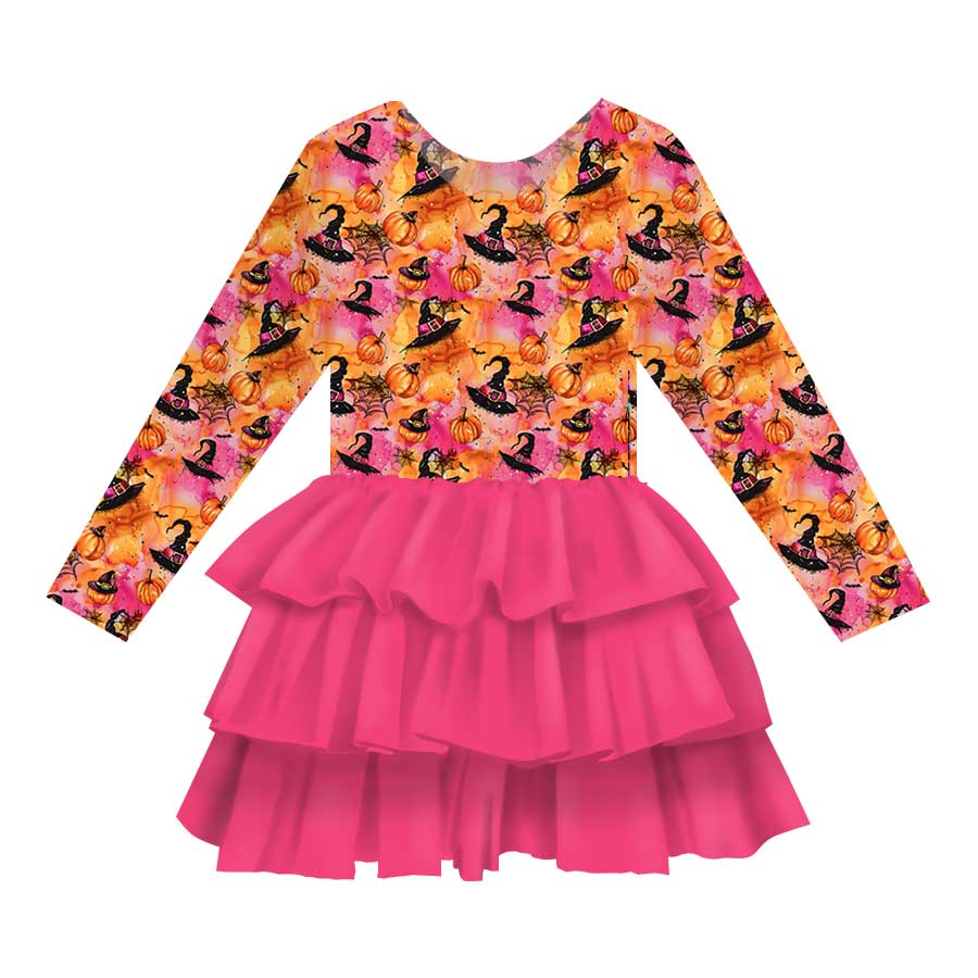 Very Scary Witch Please - Girls Long Sleeve Bamboo Tiered Tulle Dress