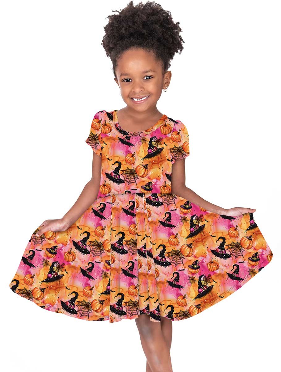 Very Scary Witch Please! - Girls Short Sleeve Bamboo Twirl Dress