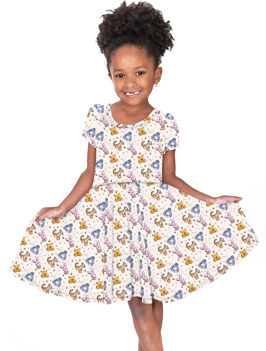 Whimsy & Wonder Pooh's Corner - Girls Short Sleeve Bamboo Twirl Dress