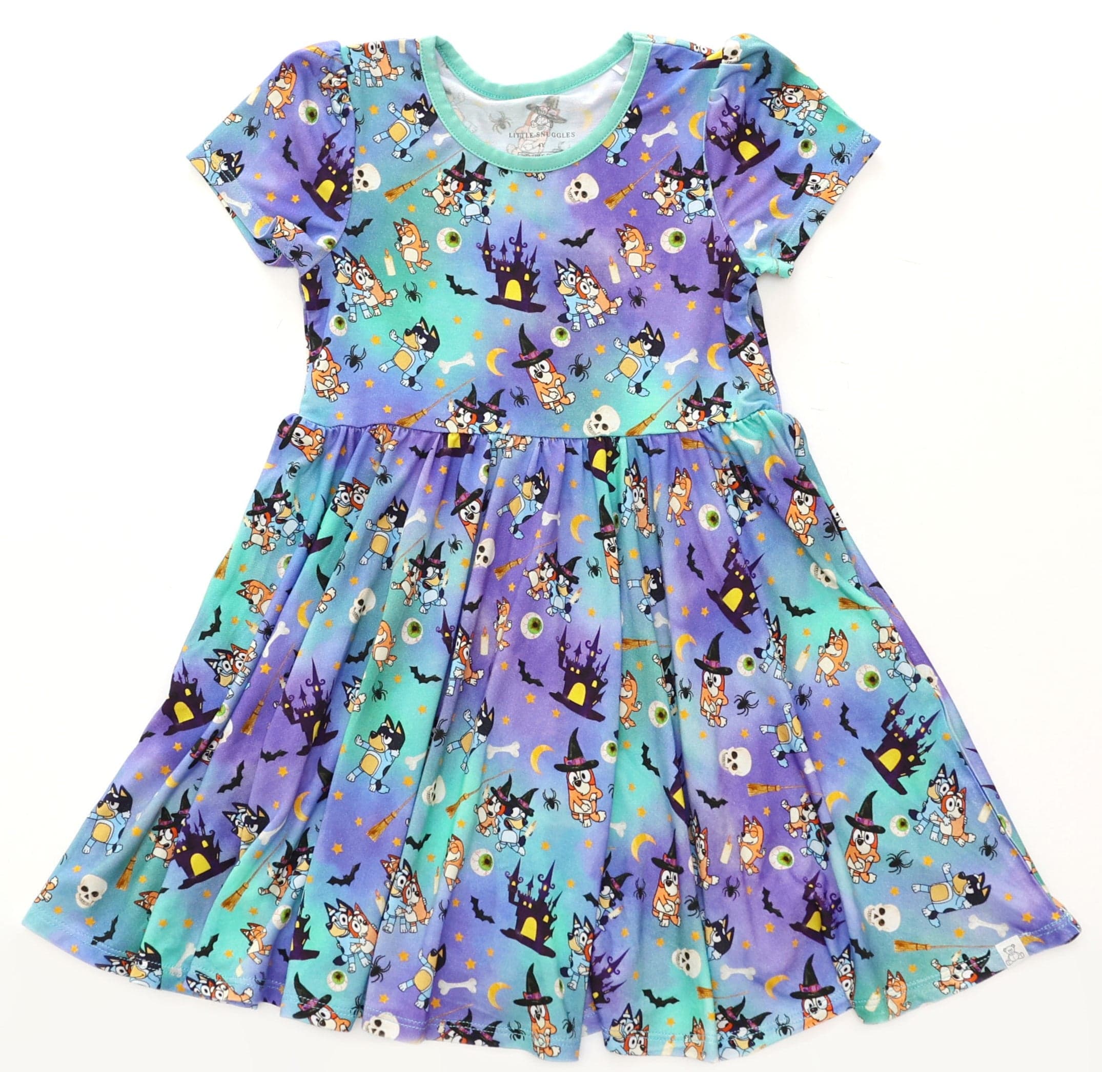 Witchin Blue - Girls Short Sleeve Bamboo Twirl Dress
