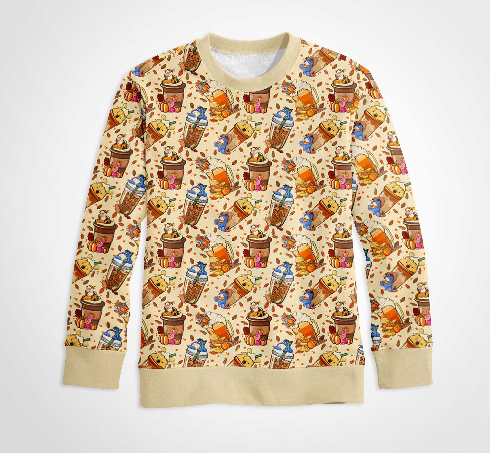 Fallin for Fall Pooh Brew - Kids Crew Neck Sweatshirt
