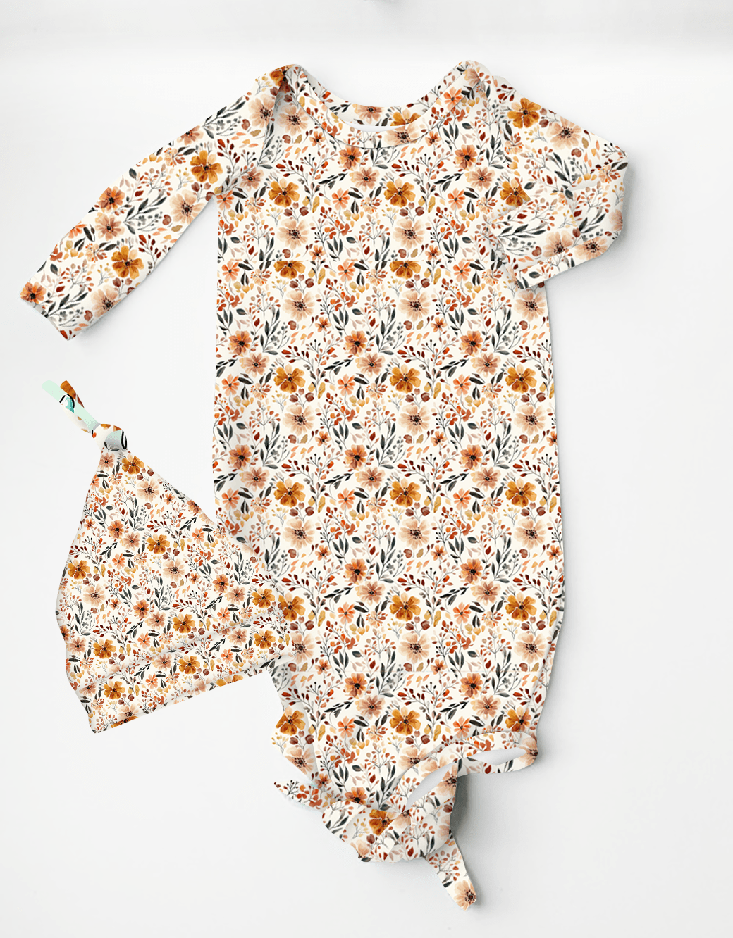 Fallin for Fall Cottage Blooms - Baby Knotted Gown with Beanie