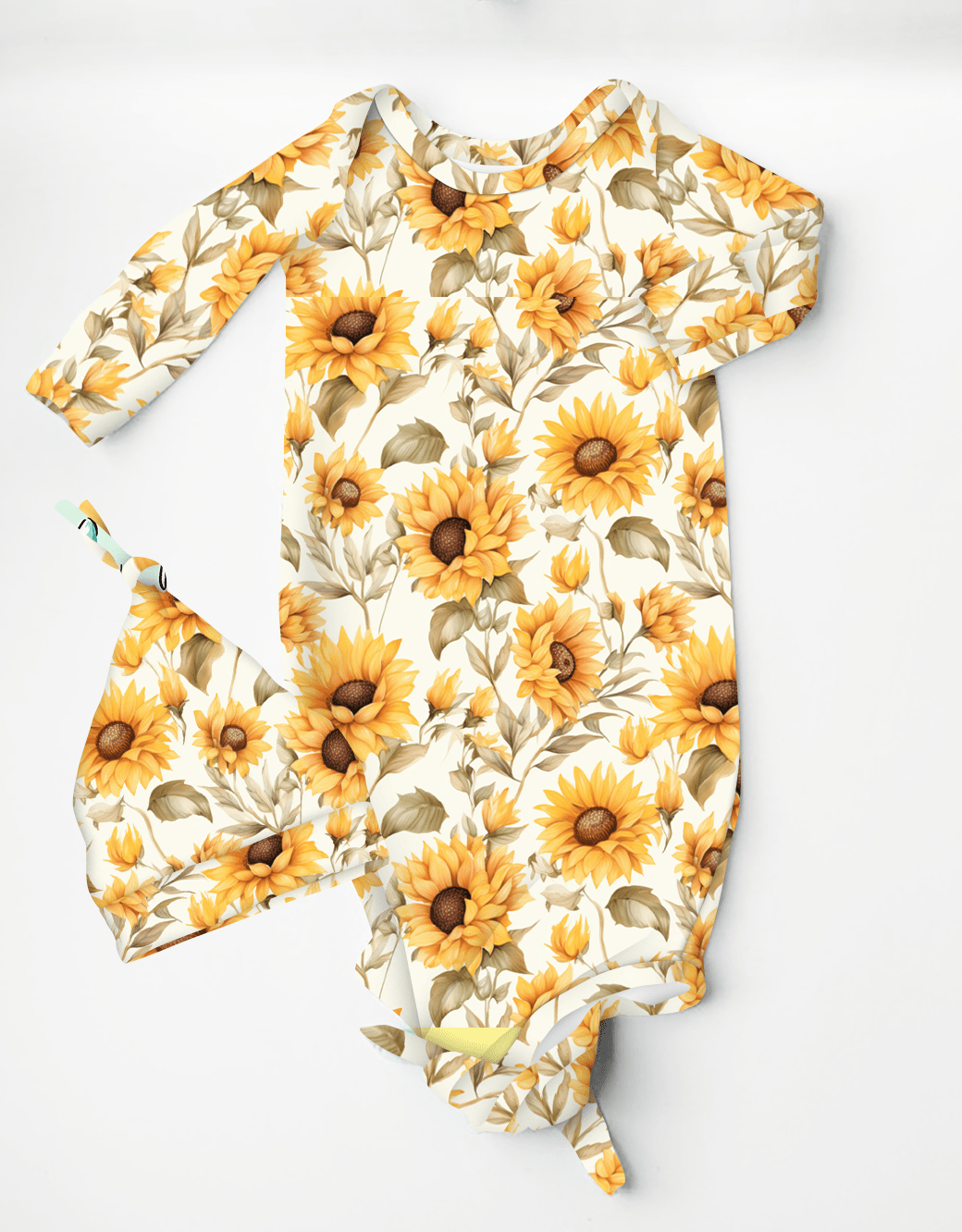 Fallin for Fall Sunflowers - Bamboo Baby Knotted Gown with Beanie