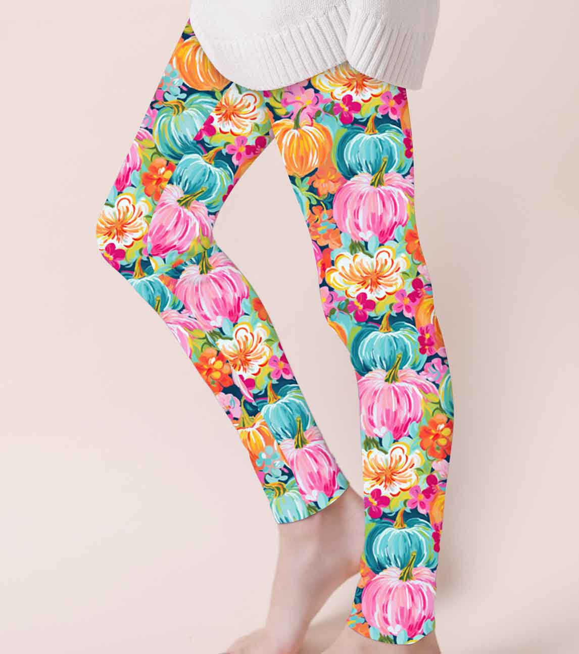 Fallin for Fall Preppy Pumpkins - Adult & Kids Casual Cloud Soft Yoga Band Leggings