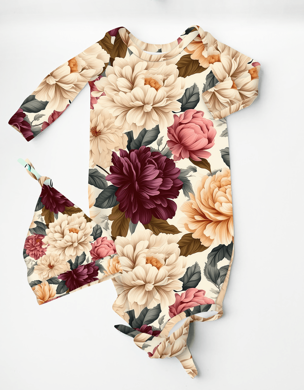 Fallin for Fall Autumn Floral - Bamboo Baby Knotted Gown with Beanie