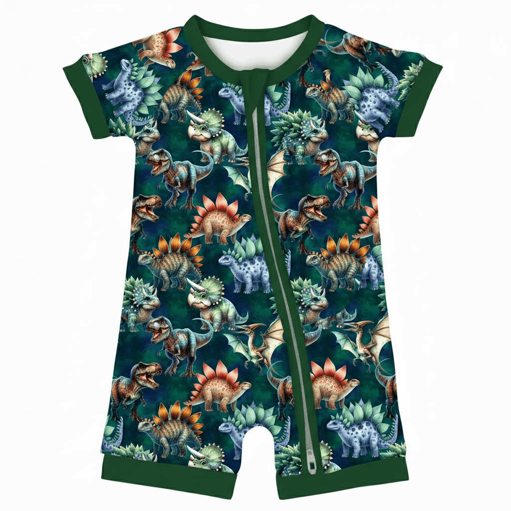 [Pre Order] Charlie Play Jurassic Dreams - Bamboo Lyocell Shorty Romper (EST SHIP EARLY MARCH)