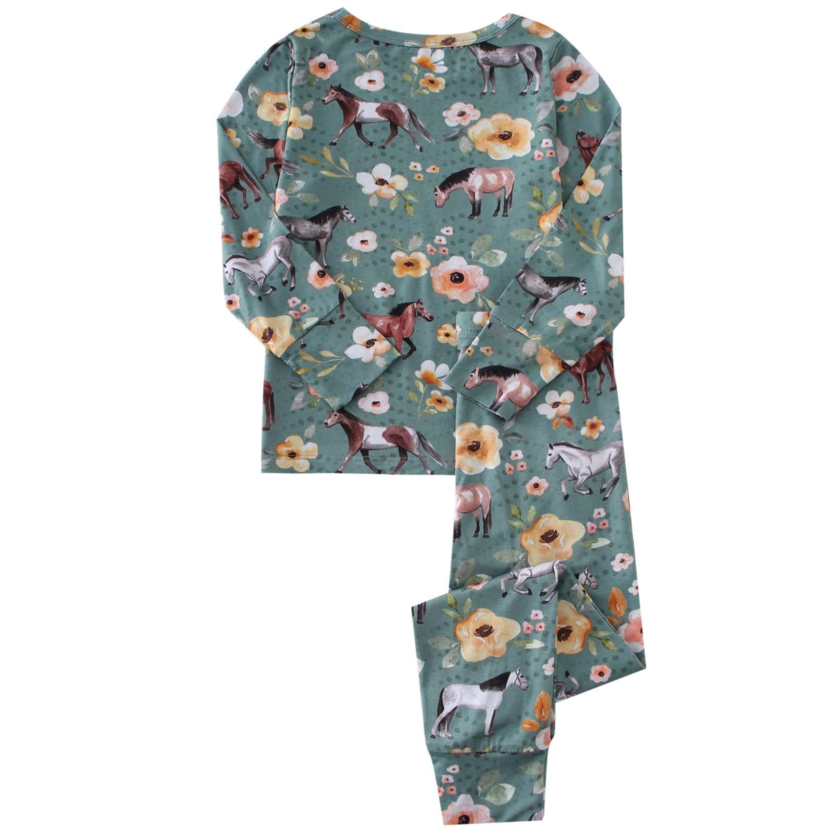 PoshTOT Forest Green Horse 2 Piece PJ Set