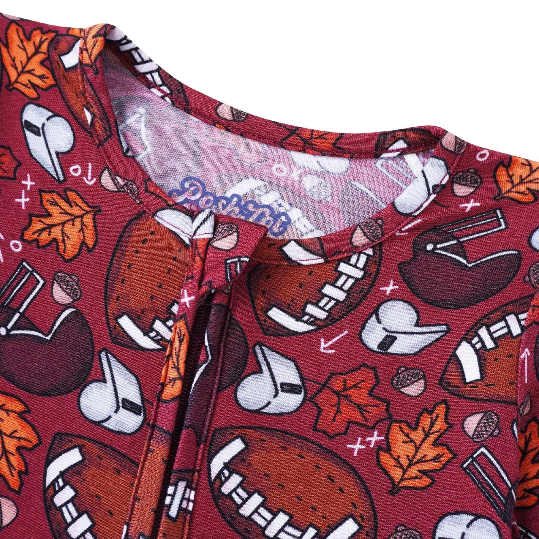 PoshTOT Fall Football Bamboo Baby Convertible Zippy Romper