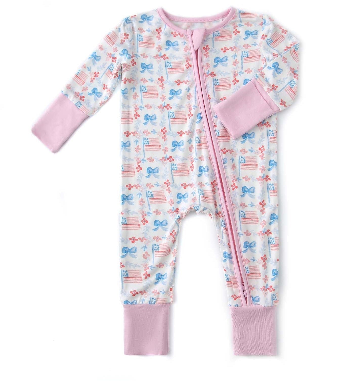 PoshTOT Sweet Americana Bamboo Baby Convertible Zippy Romper