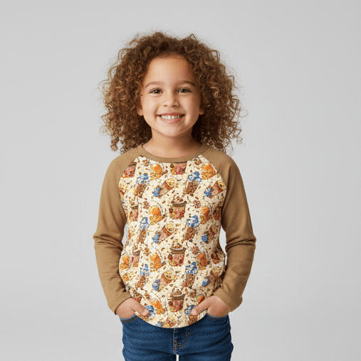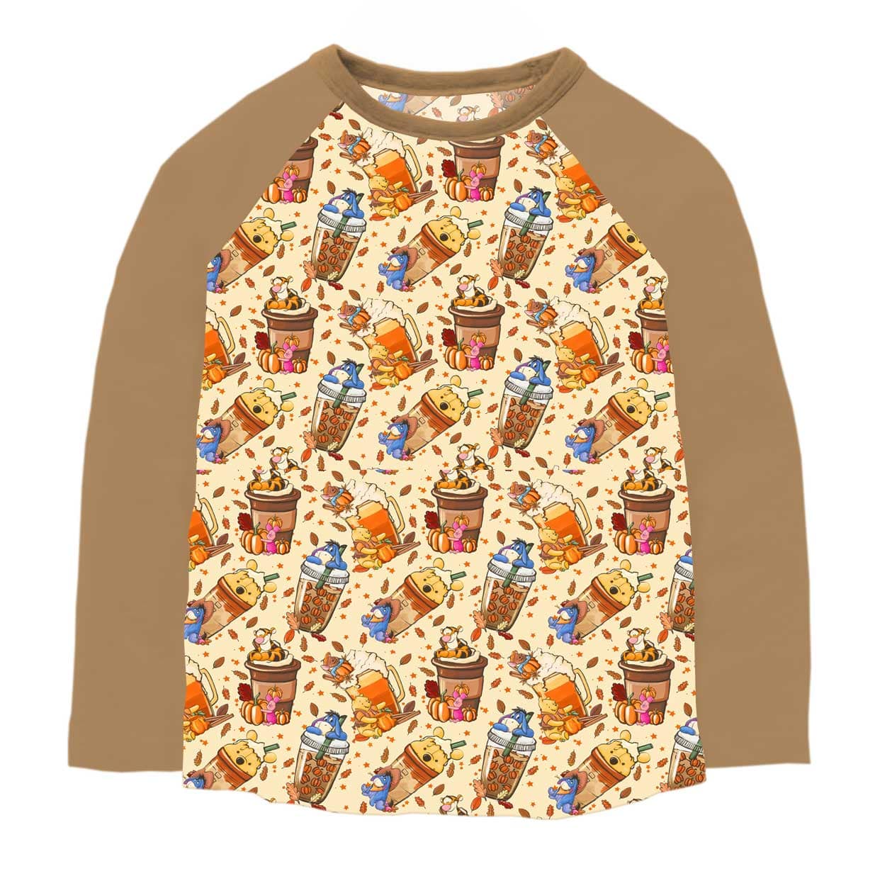 Fallin for Fall Pooh Brew - Kids Long Sleeve Bamboo Raglan Tee