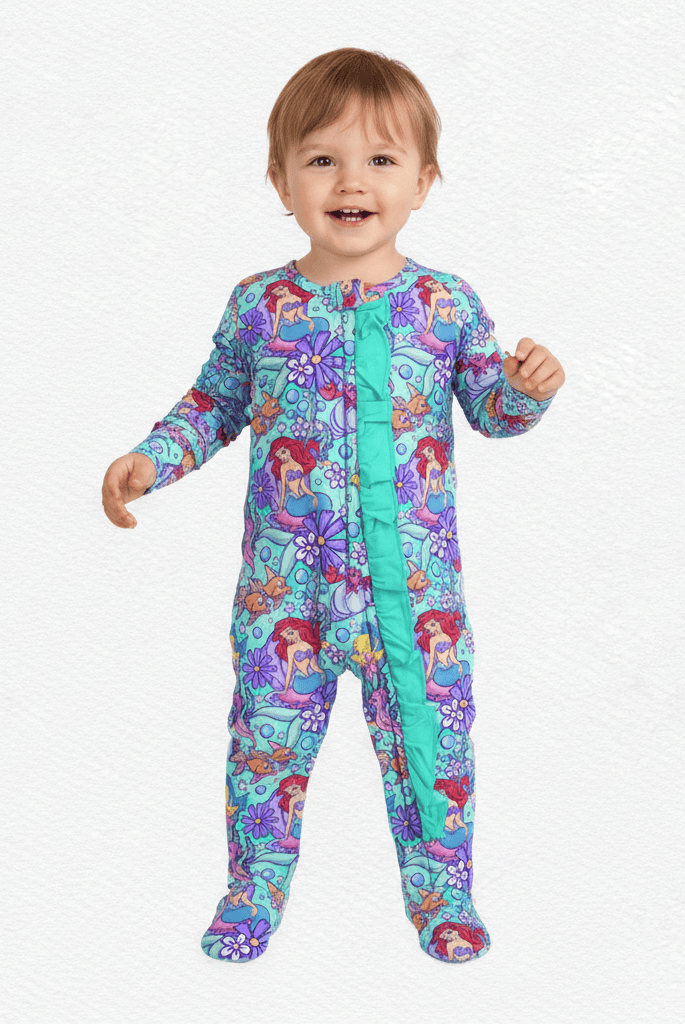 [Pre Order] Royal Quest Part of your World - Bamboo Ruffled Zippy Romper with 3 way zipper (EST SHIP LATE MAY)