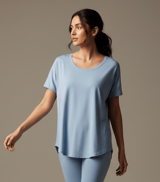 [Pre Order] Royal Quest Zoo Crew Blue - Women's Solid Bamboo Scoop Neck Short Sleeve Top (EST SHIP LATE MAY)
