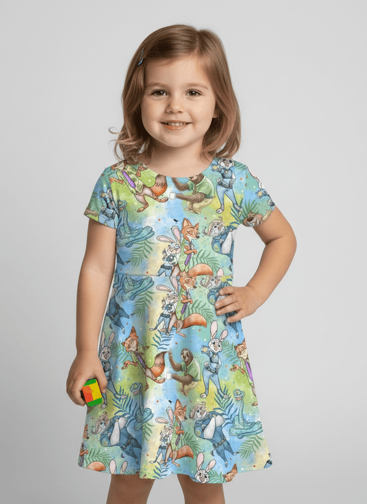 [Pre Order] Royal Quest Zoo Crew - Girls Short Sleeve Bamboo Twirl Dress (EST SHIP LATE MAY)