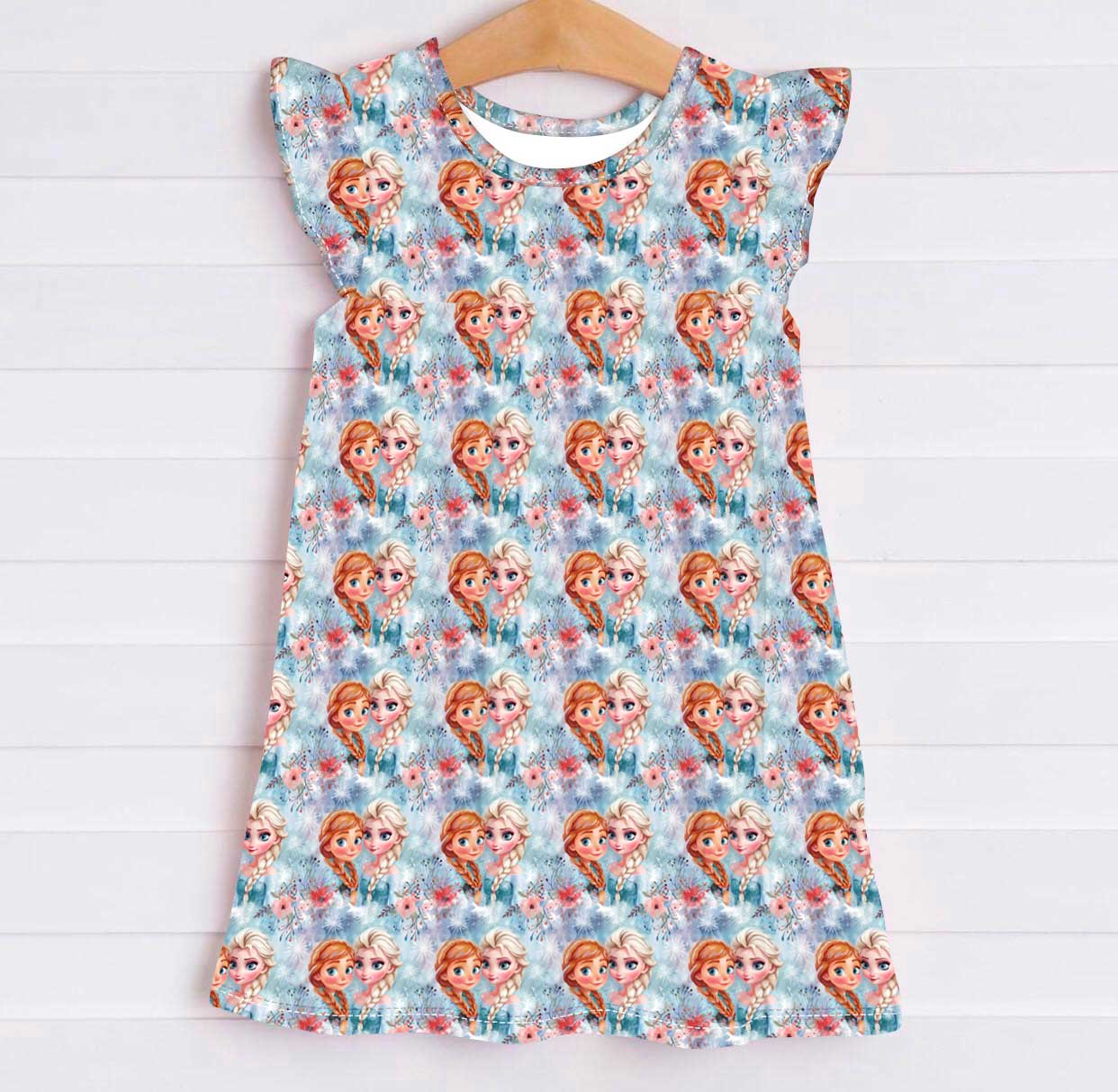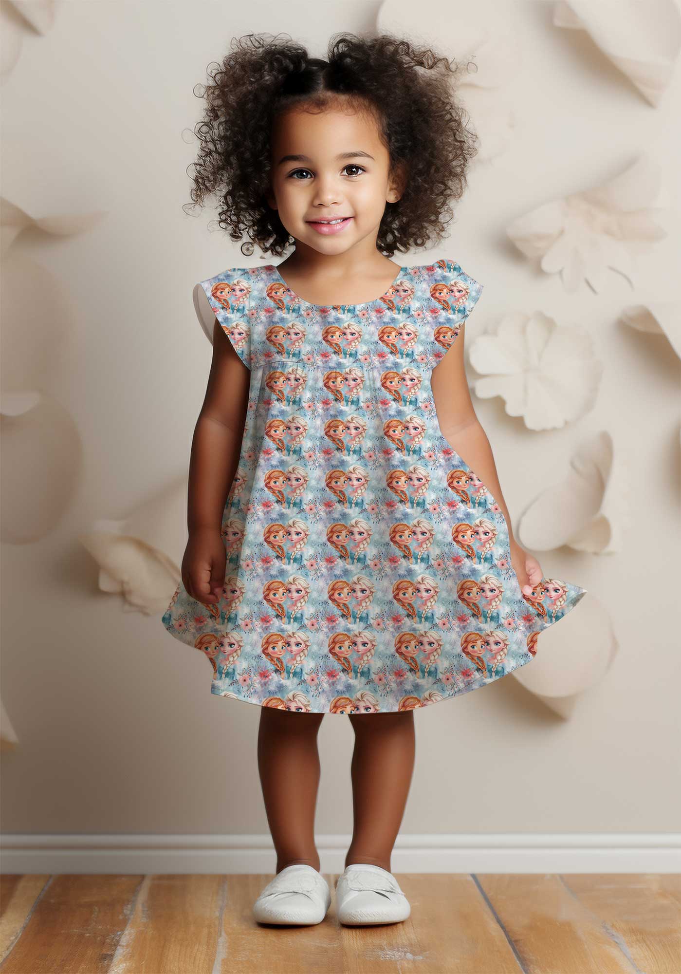 Royals & Rebels Frosted Blossoms - Girls Short Sleeve Bamboo Twirl Dress
