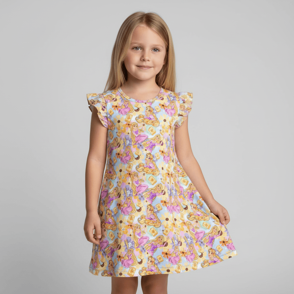 Royals & Rebels Tangled Lanterns - Girls Short Sleeve Bamboo Twirl Dress