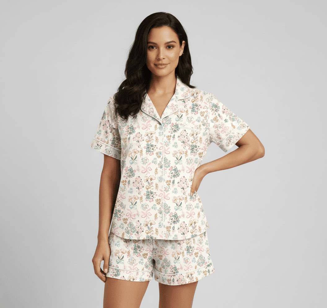 [Pre Order] Springtime Edit Ribbon Meadows - Women's Bamboo Short Sleeve and Shorts Lounge Set (EST SHIP MID MARCH)