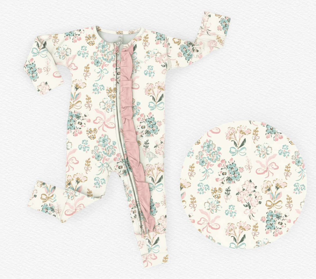 [Pre Order] Springtime Edit Ribbon Meadows - Bamboo Ruffled Zippy Romper (EST SHIP MID MARCH)